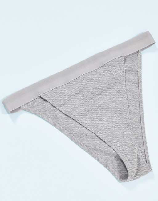 ASOS DESIGN – Effie – Grå, ribbade brazilian-trosor i bomull med hög