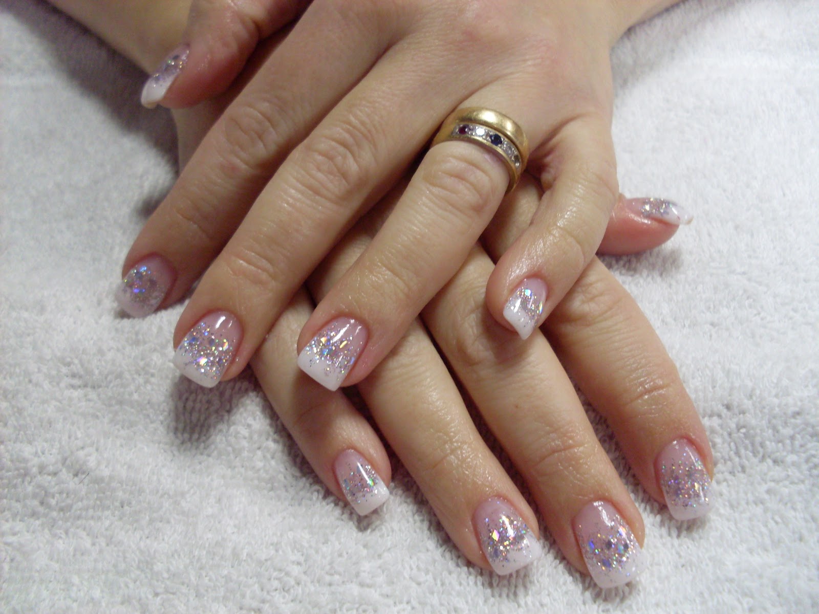 Vita naglar med glitter uppepå #nailporn #nailtech #gelnails #
